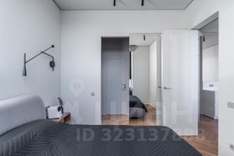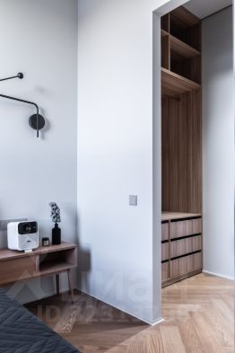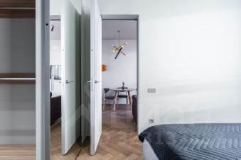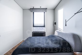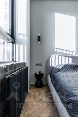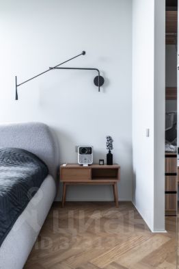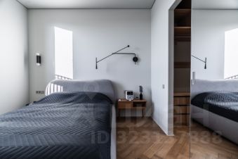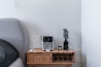 В спальне кровать 160см шириной, LED проектор на всю стену. Автоматическая римская штора.