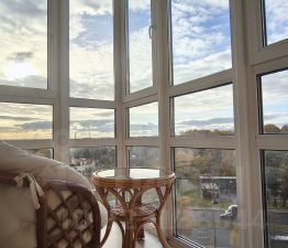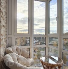 Высокие потолки и панорамное остекление на лоджии с роскошной зоной отдыха и потрясающим видом,