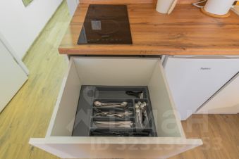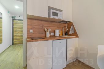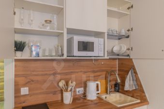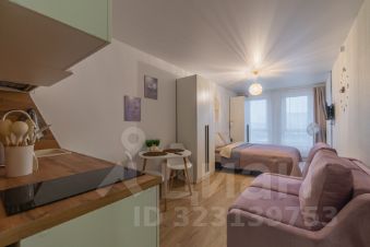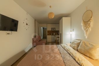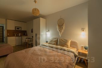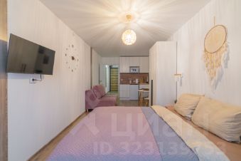 Спальня совмещена с кухонной и обеденной зоной.