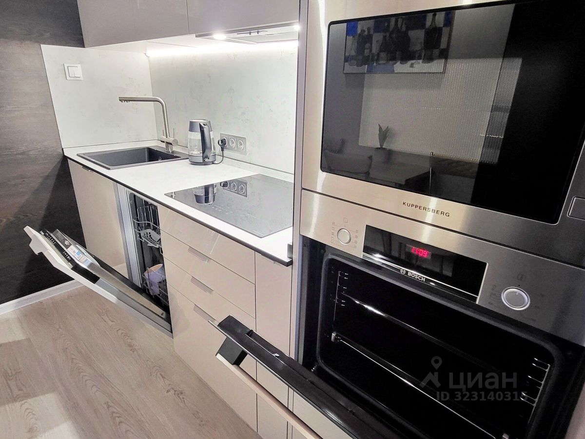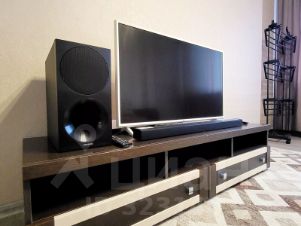 Просторная комната (17,5 м?) и кухня (7,5 м?) с выходом на застеклённый балкон. В комнате есть всё необходимое: 2-спальный диван, журнальный стол-трансформер, телевизор Samsung и стереосистема. На кухне новый гарнитур и современная техника: вытяжка, индукционная варочная панель, духовой шкаф, микроволновка, посудомоечная машина, большой холодильник и посуда для индукционной плиты. Раздельный санузел, в ванной — новая стиральная машина. В прихожей просторная гардеробная. Есть скоростной интернет.