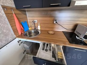 — Полностью меблирована: есть все необходимое для жизни: современная кухня, раскладной диван, шкаф и комод, обеденная зона, практичная прихожая, предоставляется посуда, постельные принадлежности, полотенца, сушилка