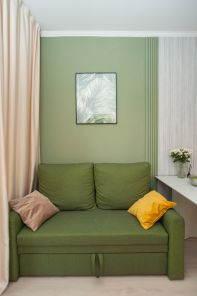 3 спальных места: двуспальная кровать в изолированной комнате, 1,5спальный диван на кухне.