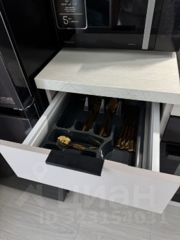 Полностью оборудованная кухня: холодильник, индукционная плита, вытяжка, микроволновка, посудомойка, электрический чайник, встроенный фильр питьевой воды, установлен бойлер на случаи отключений горячей воды.
