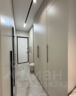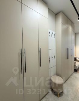 -В прихожей два больших трех створчатых шкафа в полный рост для размещения вещей. И гардеробная система для верхней одежды с пуфиком.
