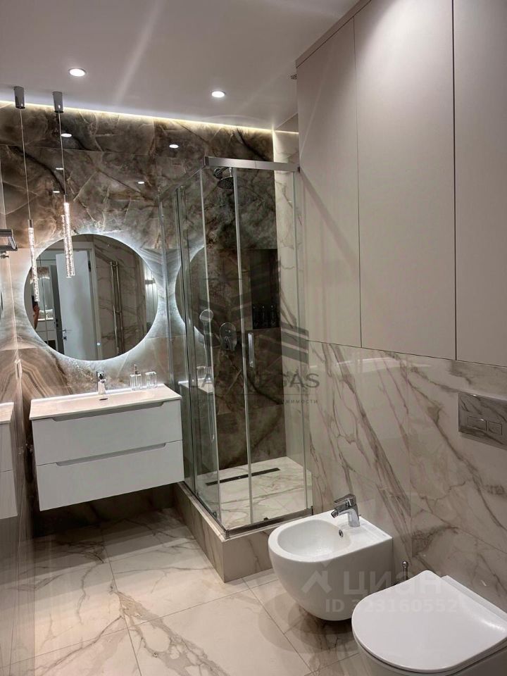 Общая площадь 46 м2, комфортная планировка, просторная кухня с выходом на лоджию, основная спальня с выделенной зоной для кабинета. Сан.узел с душевой. Вместительная гардеробная комната.