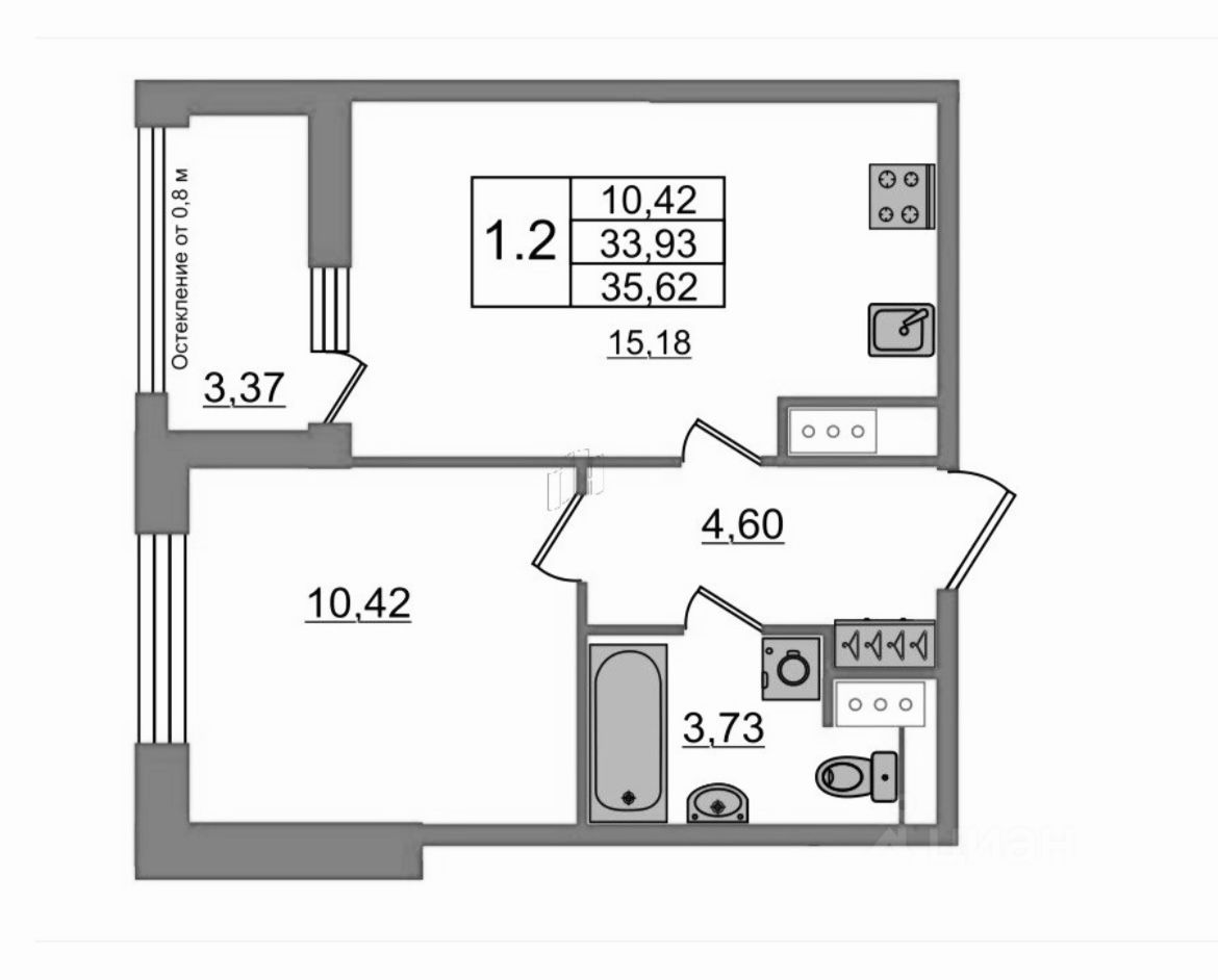 Сдается светлая евродвушка в новом ЖК бизнес-класса. Общая площадь- 35.62 кв.м, кухня-15.18 кв.м.