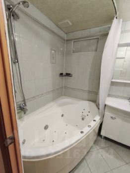 Большая угловая ванна с гидромассажем.