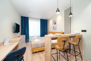 В местах отдыха: ЖК телевизор со Smart TV, зеркало в полный рост, шторы блэкаут.