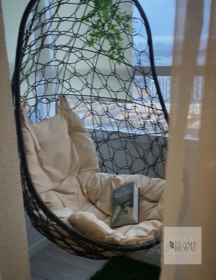 Общая зона: Большая кухня-гостиная, детская комната, отдельная ванная комната и второй балкон с подвесным креслом — идеальное место для отдыха.