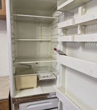 Плита электрическая с варочной поверхностью и духовым шкафом, микроволновка, холодильник.