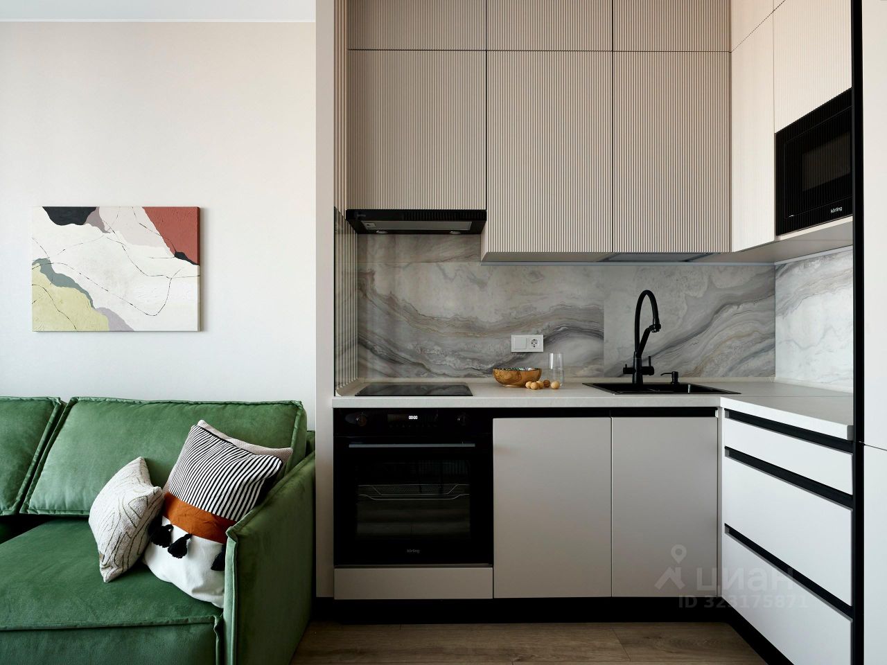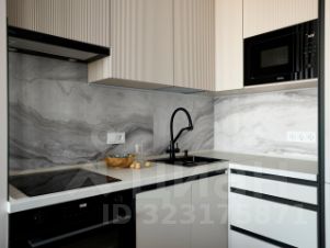 Большая функциональная кухня с встроенной подсветкой рабочей зоны порадует вас правильной зонацией и оснащением всей необходимой посудой и техникой, вся техника встроенная, есть посудомоечная машина, микроволновая печь, духовой шкаф, варочная панель. Уютная кухня-гостиная с удобным диваном, большим телевизором, красивой обеденной зоной и кондиционером.