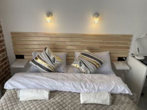 Всего 4 спальных места: часть организована на широких подоконниках из дуба с уютными матрасами на заказ в замшевых чехлах.
