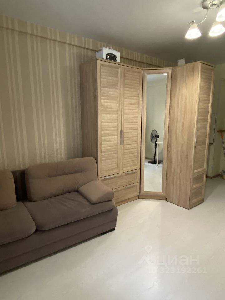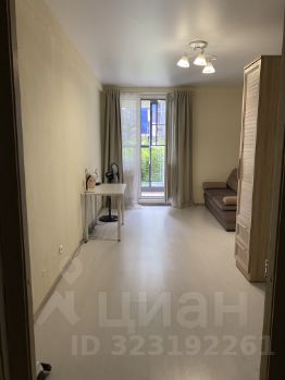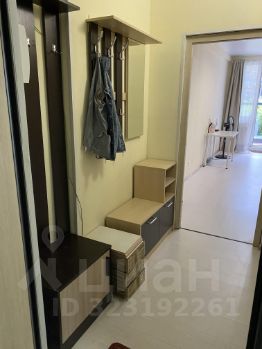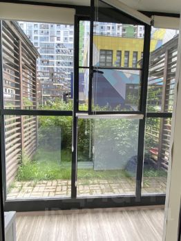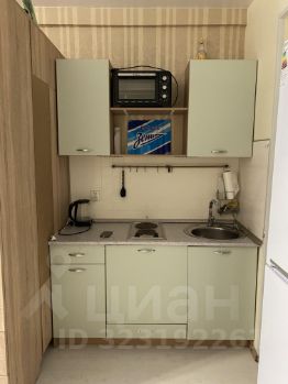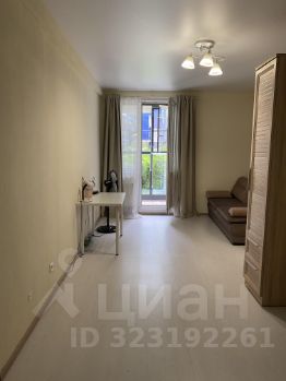Сама студия укомплектована мебелью (диваном, шкафами, столом, стиральной машинкой, а также кухней с плитой, холодильником и духовым шкафом). В ванной комнате сделан свежий ремонт. Есть уютная и просторная лоджия с панорамными окнами, роллетами и креслом-мешком.