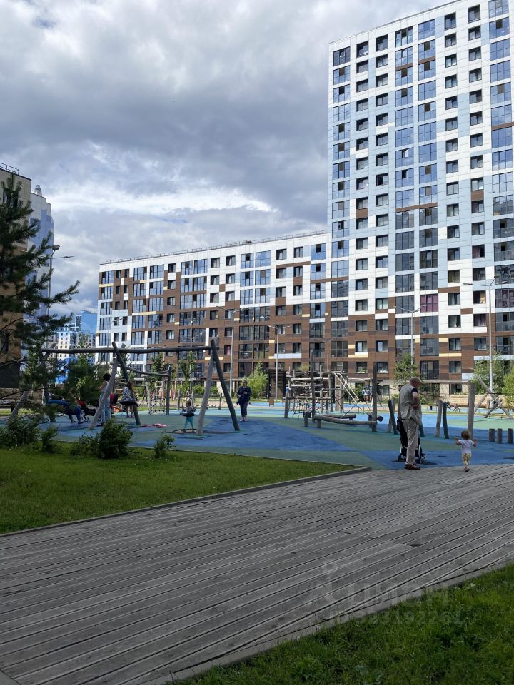 Территория двора закрытая, ухоженная, с детскими и спортивными площадками (не уродские замки кислотных цветов). На территории в шаговой доступности продуктовые магазины, аптека, кофейня, видовой ресторан и соседский центр (кино, спорт, коворкинг).