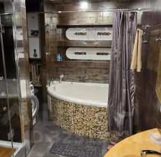 Ремонт и оснащение: Совмещенный санузел с теплыми полами: ванна с воздушным массажем, биде, душевая кабина, раковина , унитаз.