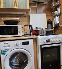 -Робот-пылесос, паровая мультифункциональная швабра с огромным количеством насадок, стиральная машина, утюг, чайник, плита, духовка, холодильник, микроволновка.