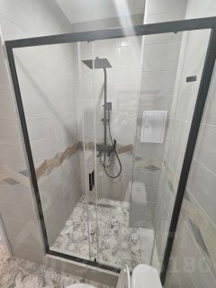 Комната правильной прямоугольной формы. Произведена чистовая отделка. Полностью оборудован санузел: душевая кабина, унитаз, раковина, стиральная машина, полотенцесушитель. В комнате разведена электрическая сеть с розетками и выключателями, выведены трубы воды и канализации.