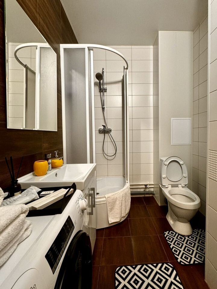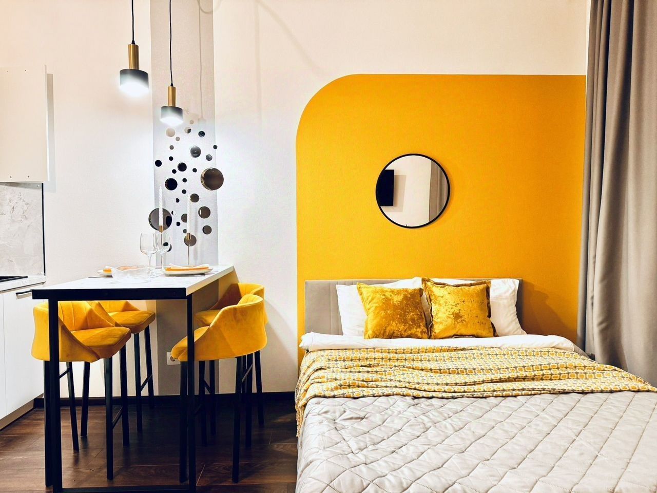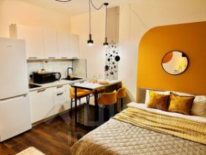 В квартире выполнен дизайнерский ремонт. Просторная жилая зона включает в себя уютную зону отдыха с диваном и креслом, а также функциональную обеденную зону. Из мебели - удобные спальные места.