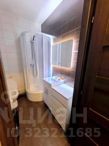 В ванной комнате установлена стиральная машина, душевая кабина, система "Теплый пол", большое зеркало с подсветкой.