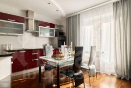 Просторная удобная кухня со встроенным гарнитуром и техникой. Выход на большой балкон.