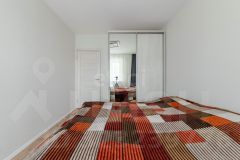 В спальне кровать и большой шкаф купе. Спальня имеет выход на балкон, где можно организовать дополнительные места хранения или зону отдыха.