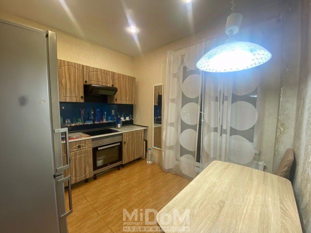 -- Укомплектована необходимой мебелью и техникой: стиральная машина, холодильник, чайник, варочная панель, духовка, чайник, вытяжка, кухонный гарнитур, стол и стулья; кровать, раскладной диван, шкаф, телевизор; прихожая.