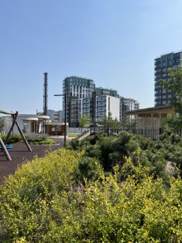 - Рядом ТЦ Охта Молл и другие магазины (в том числе кафе, аптеки, Пятерочка, ВкусВилл)