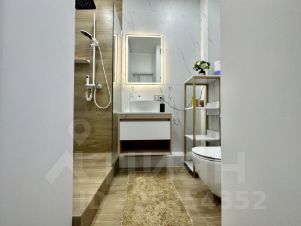Ванная комната с душевой системой, раковиной и стильным зеркалом для утренних сборов. А самое главное, в ванной комнате расположены стирально сушильная машина для удобства стирки будущих жильцов.
