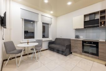Просторная планировка — комната и кухня разделены лёгкой перегородкой