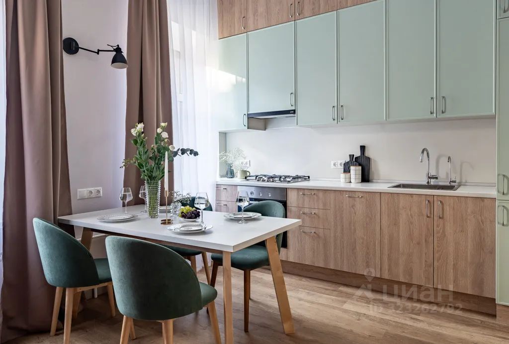 В апартаментах просторная кухня-гостиная, спальня и кабинет с диваном. Квартира оснащена бесключевым доступом, поэтому возможен заезд в любое время после 15:00.