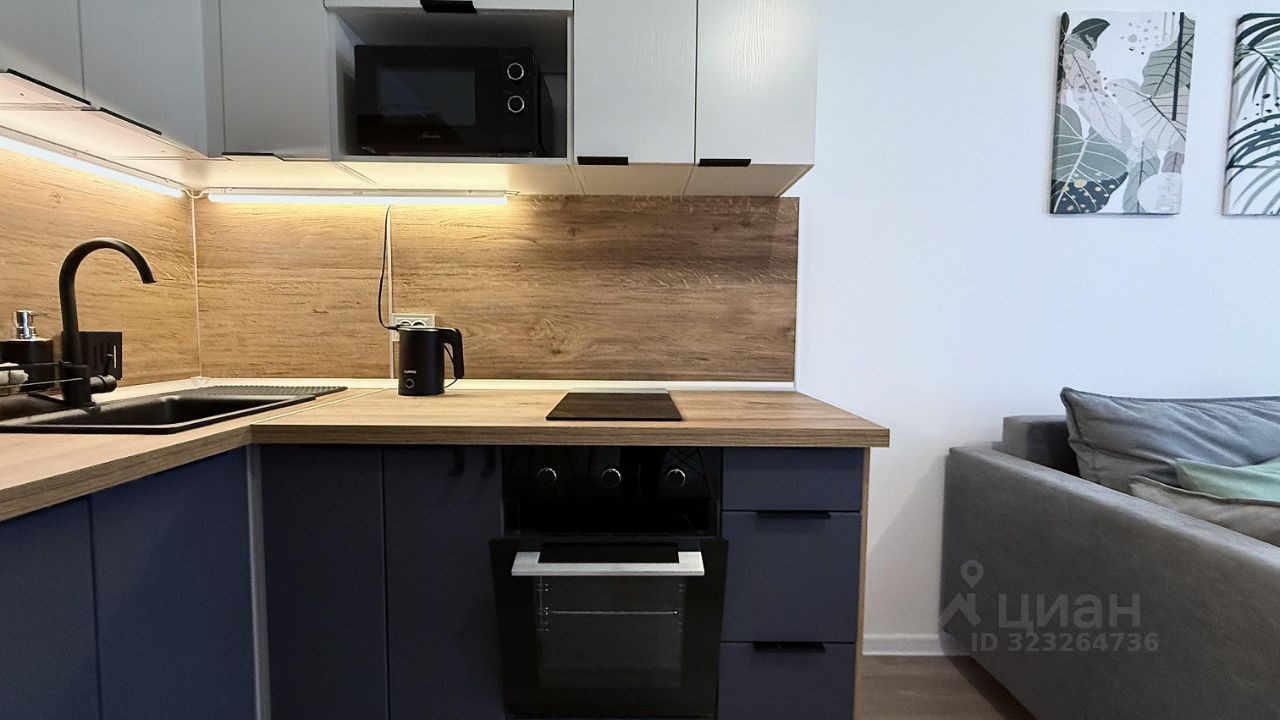 Студия укомплектована абсолютно новой мебелью и техникой, предметами декора , текстилем, посудой (как на фото). С любовью продуманы все детали для комфортного проживания: стильная кухня варочной панелью, духовым шкафом, полноценным двухкамерным холодильником, микроволновкой, чайником и большим количеством шкафчиков; грамотное зонирование помещения - предусмотрены места для хранения одежды и вещей, нет загромождения пространства, светлые тона в интерьере, удобное спальное место (диван-кровать), есть телевизор. Имеется стиральная машина, пылесос, гладильная доска и утюг.