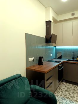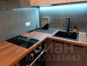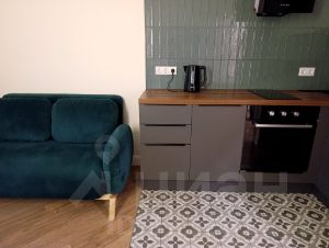 - Кухня-гостинная с раскладным диваном для гостей и эргономичной кухонной мебелью