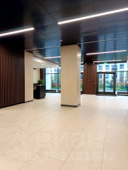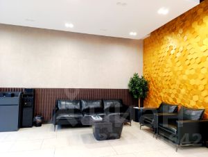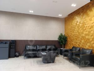 на входе в ЖК, комфортная зона для ожидания или коротких встреч с диванами и кофемашиной.