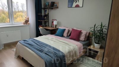 Вид из окна спальни открывается на лес с речкой, из лоджии - частично на речку, частично виден ухоженный внутренний двор.