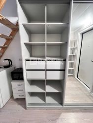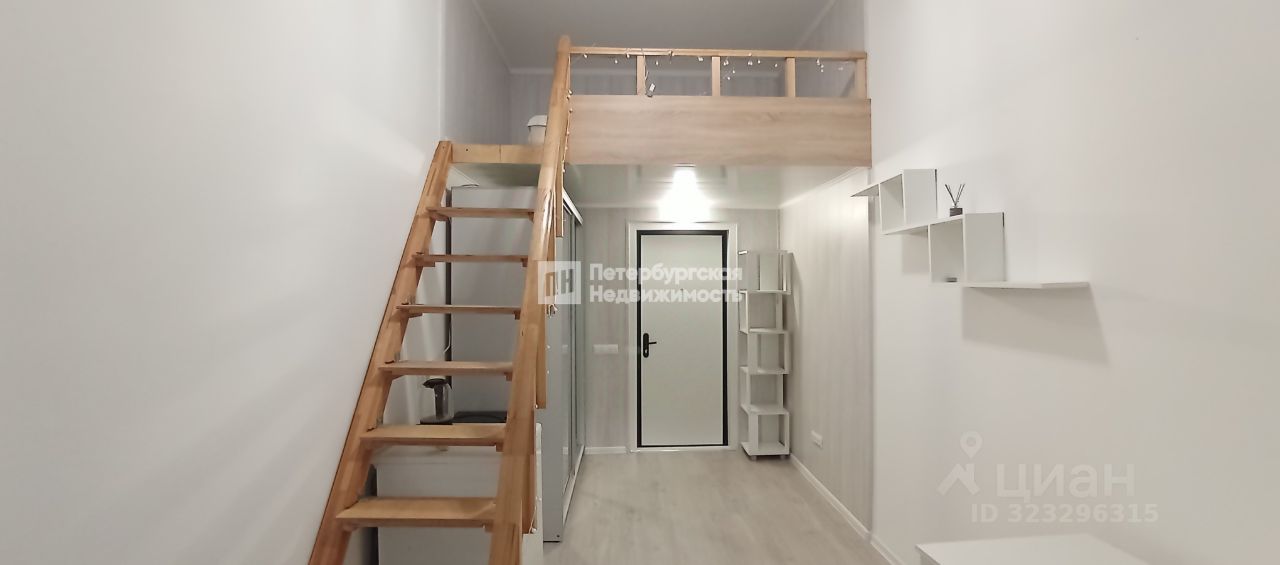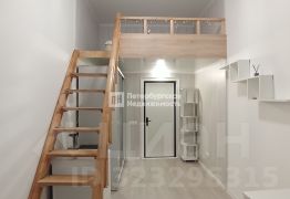 Эта комната обеспечивает достаточно пространства для комфортного проживания. В ней есть зона кухни и удобное спальное место на втором этаже, что создаёт атмосферу домашнего уюта.