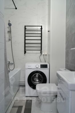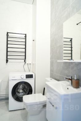 - В ванной комнате имеется стиральная машинка с электрическим полотенцесушителем.
