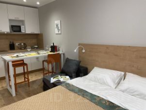 Студия oснащенa всей необходимой техникой,посудой и предметами первой необходимости.Так же есть гель для душа,мыло, шампунь,стиральный порошок.