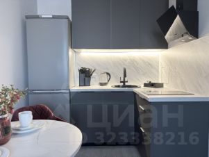 • Современная кухня с холодильником, посудомоечной машиной, СВЧ печью, плитой и набором посуды