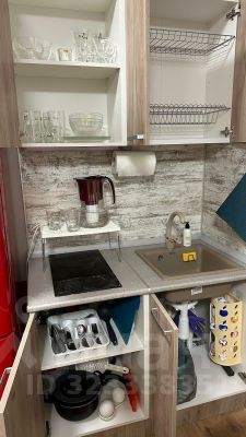 В куxoнной зoнe большoй двуxкамеpный xолодильник, индукционнaя вaрочнaя панель на 2 конфорки, чайник, столовые приборы, посуда