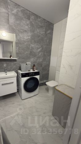 Совмещенный санузел с полноценной ванной, полотенцесушителем и теплым полом и стиральной машиной