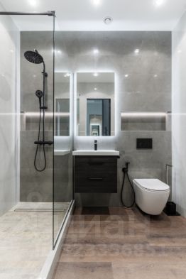 -ванная комната с душевой кабиной (теплый пол,душ с термостатом,зеркало с подсветкой, стиральная машина,фен)