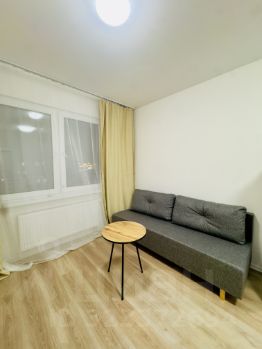 В квартире сделан качественный ремонт. Из техники есть встроенная кухня, с холодильником, плитой и микроволновой печью, столом и стульями. Комната меблирована: диван, комод и журнальный стол. В санузле установлен душ, стиральная машина, шкаф для хранения и зеркало с подсветкой. В прихожей: большой шкаф, обувница и вешалка для верхней одежды. Из Окон открывается вид как на город, так и во двор.