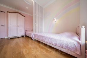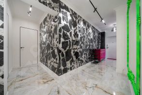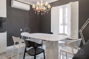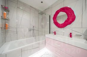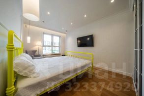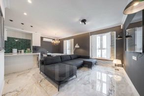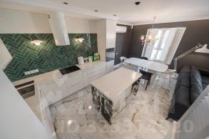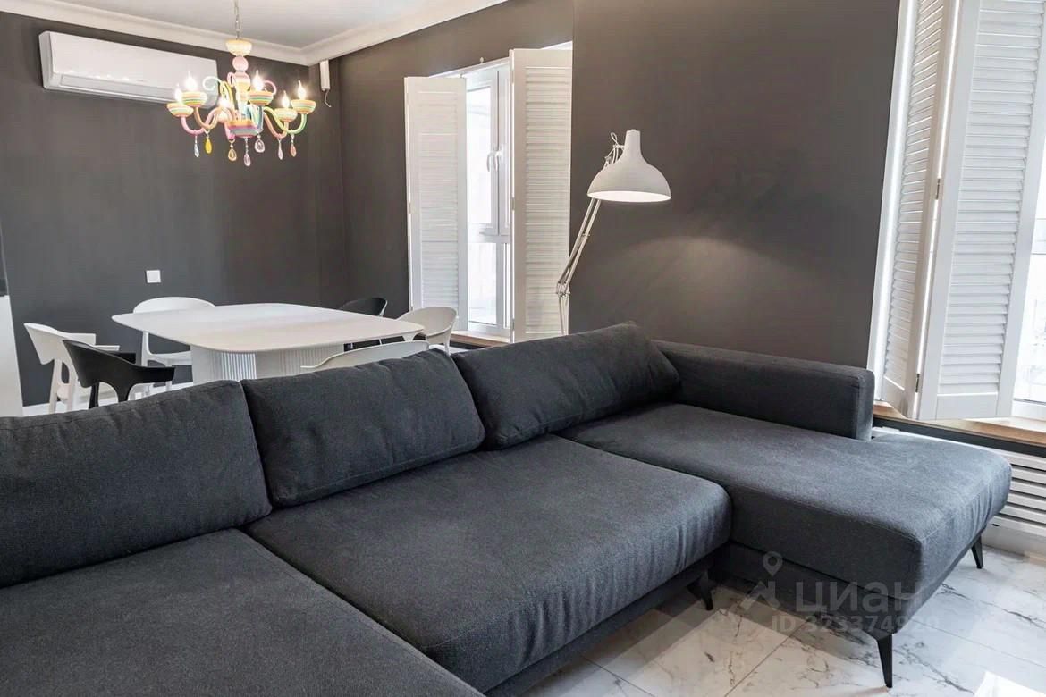 Квартира радует дизайнерским ремонтом и полностью обставлена мебелью. Кухня площадью 15 кв. м оборудована всей необходимой техникой: кондиционер, холодильник, посудомоечная машина, стиральная машина и телевизор. В квартире два совмещенных санузла, в одном из которых есть и ванна, и душевая кабина. Окна выходят на улицу, поэтому в комнатах всегда светло и уютно.