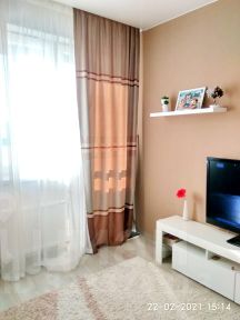 ОПИСАНИЕ: есть встроенная кухня, шкафы, бытовая техника, чайник, тостер, телевизор. С/У совмещённый, душ кабина, лоджия застеклена. Для пары, 1 человека, без животных. Спальное место тахта 1.5 спальная, и имеется раскладушка.