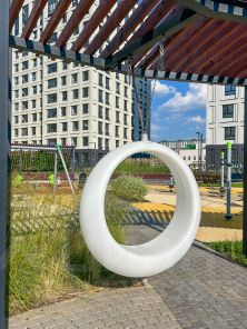 Прекрасный благоустроенный закрытый внутренний двор с детскими и спортивными площадками.