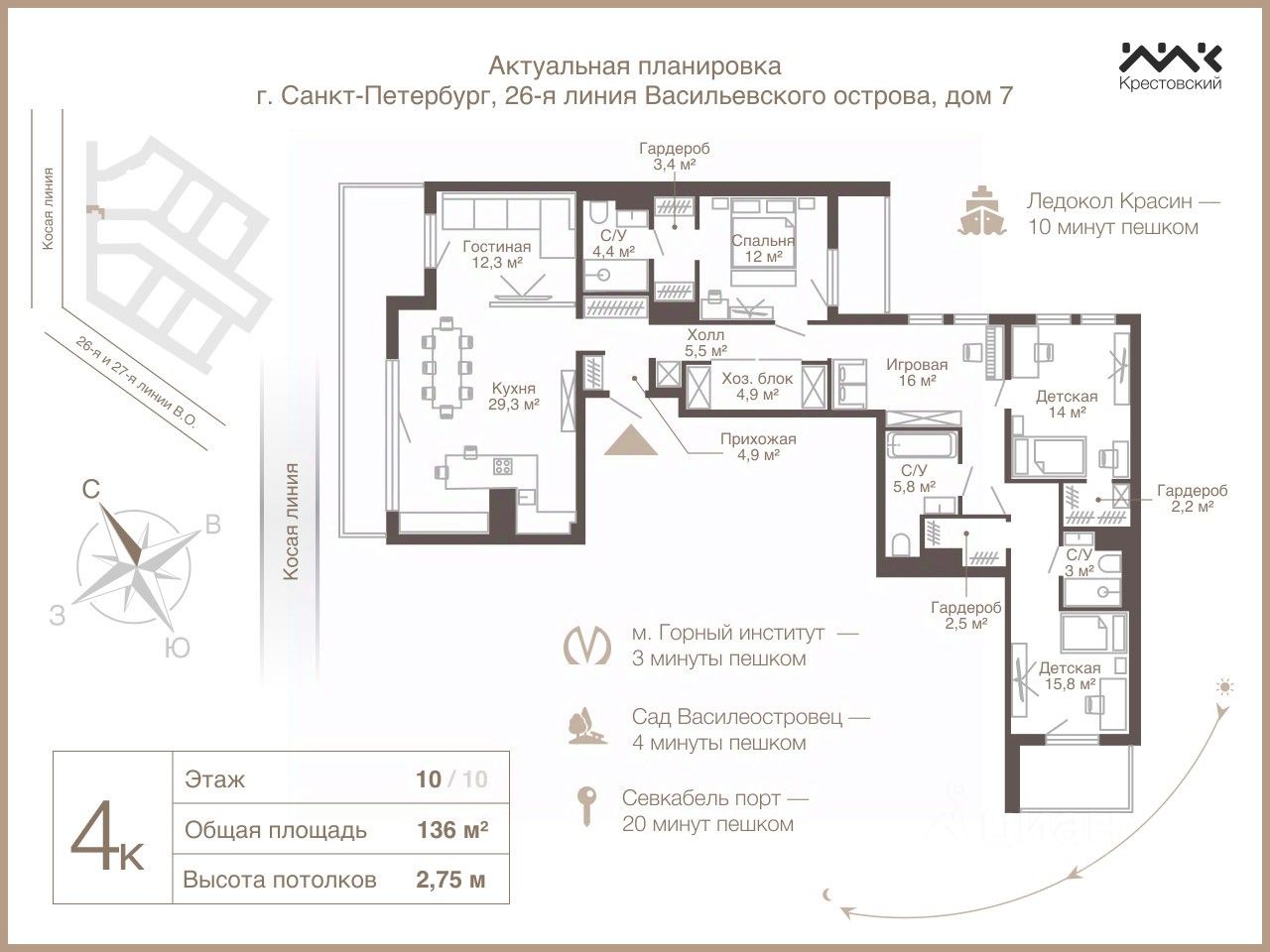 Квартира находится всего в 5 минутах от новой станции метро "Горный институт". Отличная транспортная доступность в любую точку города как на автомобиле, так и на общественном транспорте. Рядом — ЗСД.