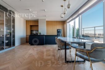 В квартире выполнен эксклюзивный дизайнерский ремонт с использованием натуральных материалов премиальных брендов. На полу — натуральный паркет. Просторная кухня-гостиная с выходом на террасу разделена на три функциональные зоны: кухня, гостиная и столовая.