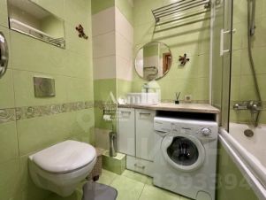 - Совмещенный санузел с ванной, стиральной машиной, раковиной и шкафчиком с зеркалом;