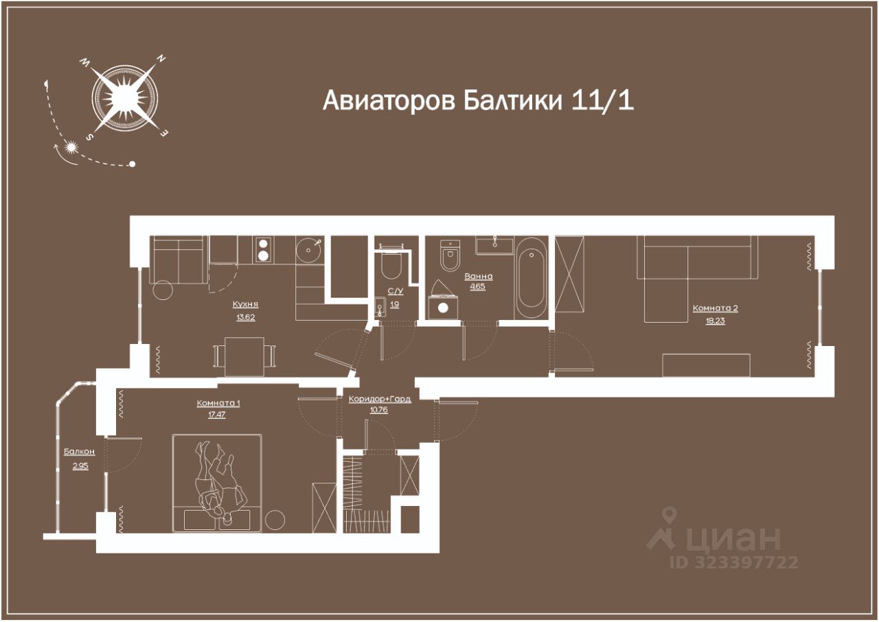 Представляем уютную и стильную квартиру в современном жилом комплексе комфорт-класса по адресу проспект Авиаторов Балтики, 11/1.
