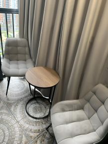 В квартире есть теплые полы, кондиционер, шторы рулонные и римские, а также Black out.